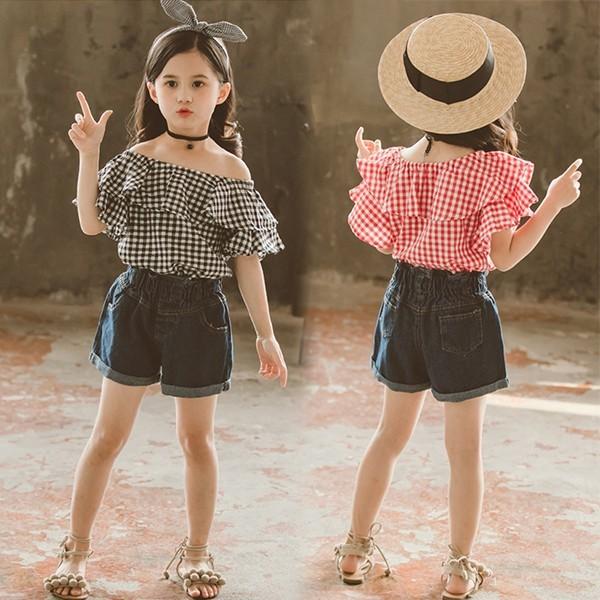 子供服 セットアップ 夏 韓国子供服 女の子 ジュニア キッズ 上下セット 2点セット 半袖 Tシャツ デニムパンツ 短パン 可愛い おしゃれ 通学着 通園着 Y アユストア 通販 Yahoo ショッピング